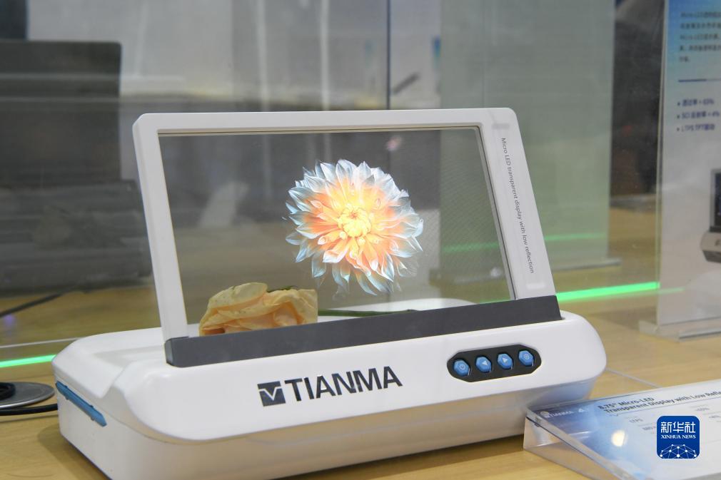 這是9月7日在“2023世界顯示産業大會新型顯示創新成果展”現場拍攝的8.75"Micro-LED透明低反顯示。