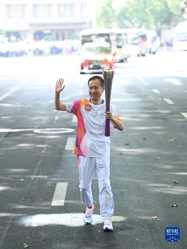 當日,杭州亞運會火炬傳遞在杭州西湖涌金公園廣場啟動,共有106棒火炬手參與當日傳遞。