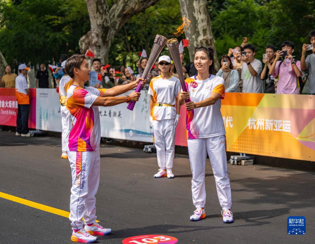 當日,杭州亞運會火炬傳遞在杭州西湖涌金公園廣場啟動,共有106棒火炬手參與當日傳遞。