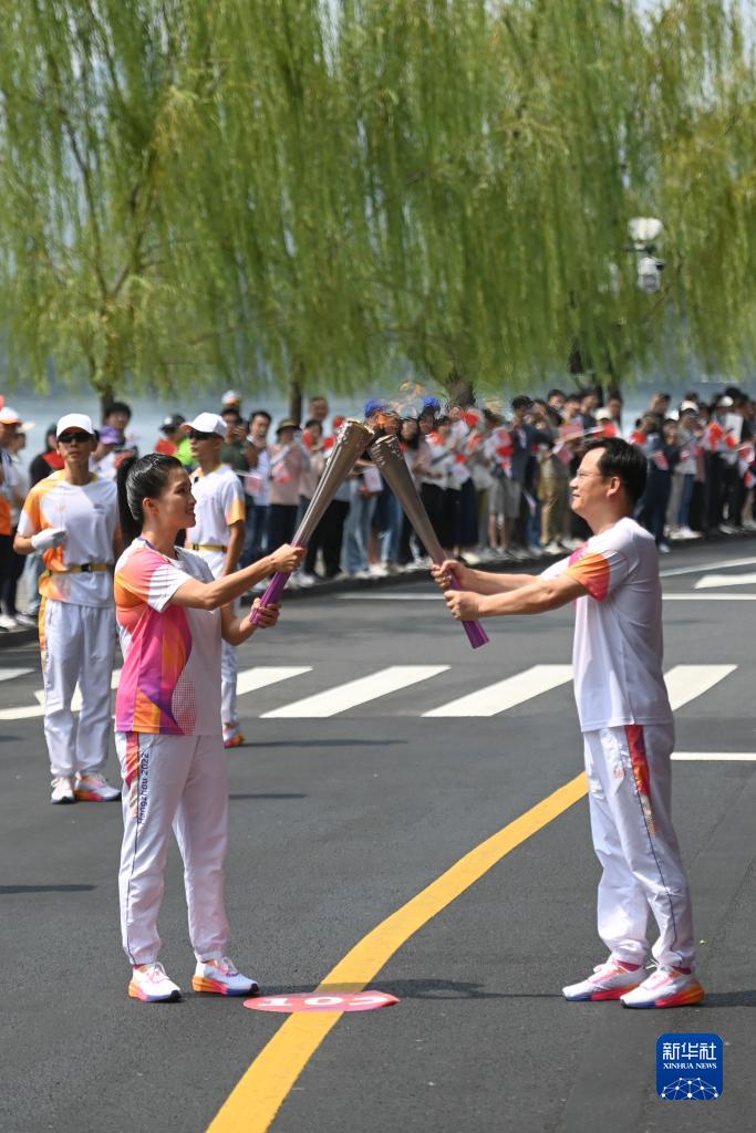 當日,杭州亞運會火炬傳遞在杭州西湖涌金公園廣場啟動,共有106棒火炬手參與當日傳遞。