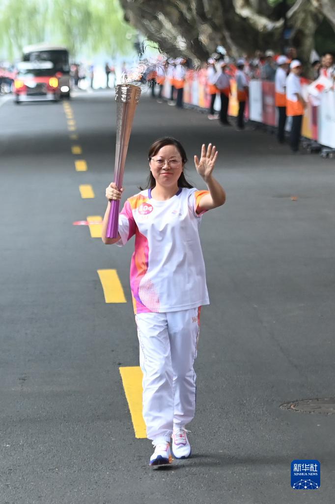 當日,杭州亞運會火炬傳遞在杭州西湖涌金公園廣場啟動,共有106棒火炬手參與當日傳遞。