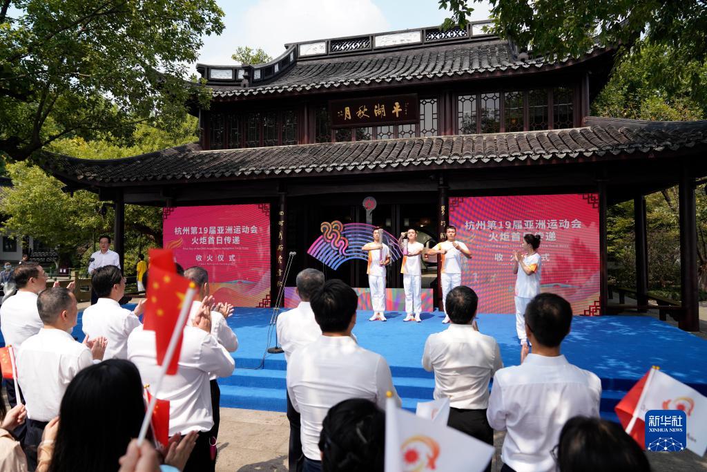 9月8日,杭州亞運會火炬首日傳遞收火儀式在杭州西湖景區平湖秋月景點進行。