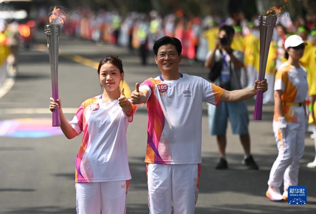 當日,杭州亞運會火炬傳遞在杭州西湖涌金公園廣場啟動,共有106棒火炬手參與當日傳遞。