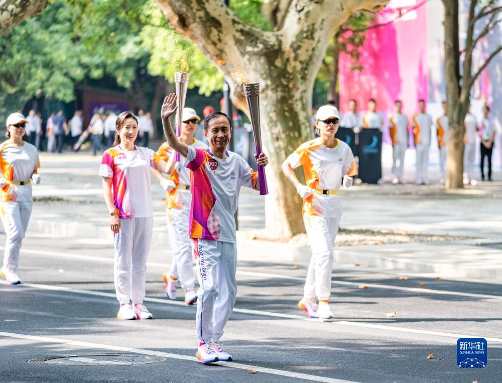 當日,杭州亞運會火炬傳遞在杭州西湖涌金公園廣場啟動,共有106棒火炬手參與當日傳遞。