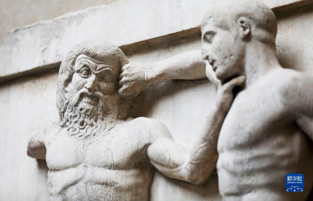 這是9月7日在英國倫敦大英博物館拍攝的帕特農神廟大理石雕刻。