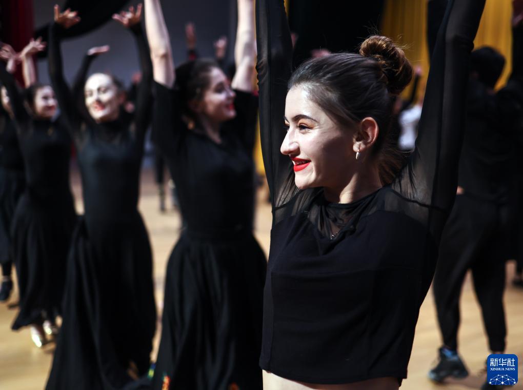 新疆塔縣文工團演員阿曼古麗·瓦比克(右)和同伴在排練鷹舞節目《傳承》(9月4日攝)。新華社記者 蘭紅光 攝