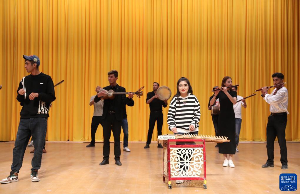 新疆塔縣文工團樂手在排練(9月4日攝)。新華社記者 程婷婷 攝