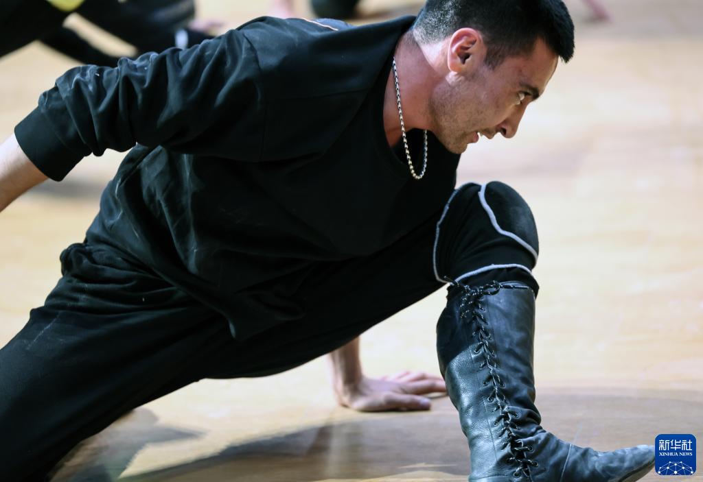 新疆塔縣文工團演員巴拉提·買代沙在排練雜技節目(9月4日攝)。新華社記者 蘭紅光 攝
