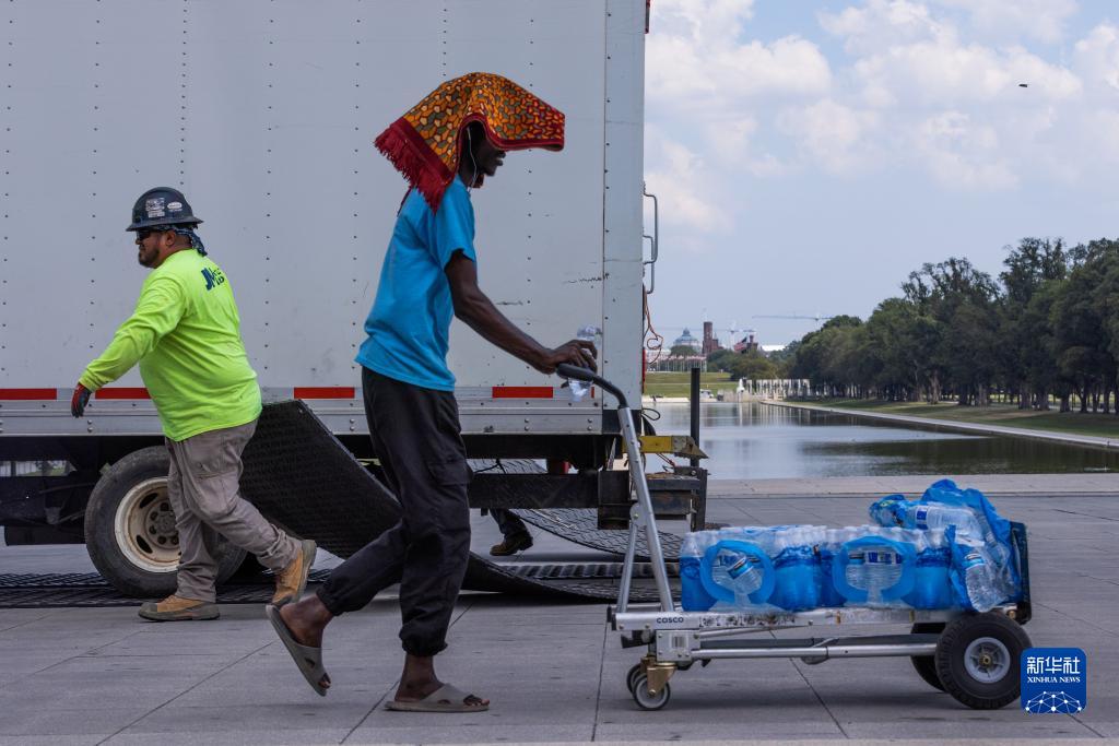 9月7日,在美國首都華盛頓,一名商販運送瓶裝水。