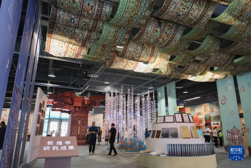 這是9月7日在第六屆絲綢之路(敦煌)國際文化博覽會拍攝的世界文化遺産保護典範和敦煌學研究高地建設成果展現場。