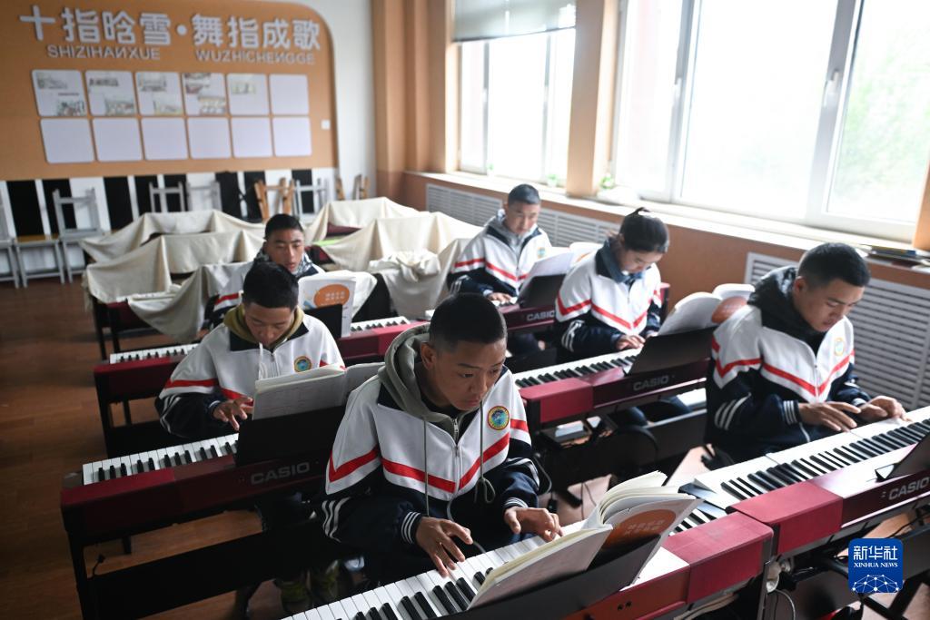 9月8日,在果洛藏族自治州職業技術學校,學前教育專業學生在上音樂課。
