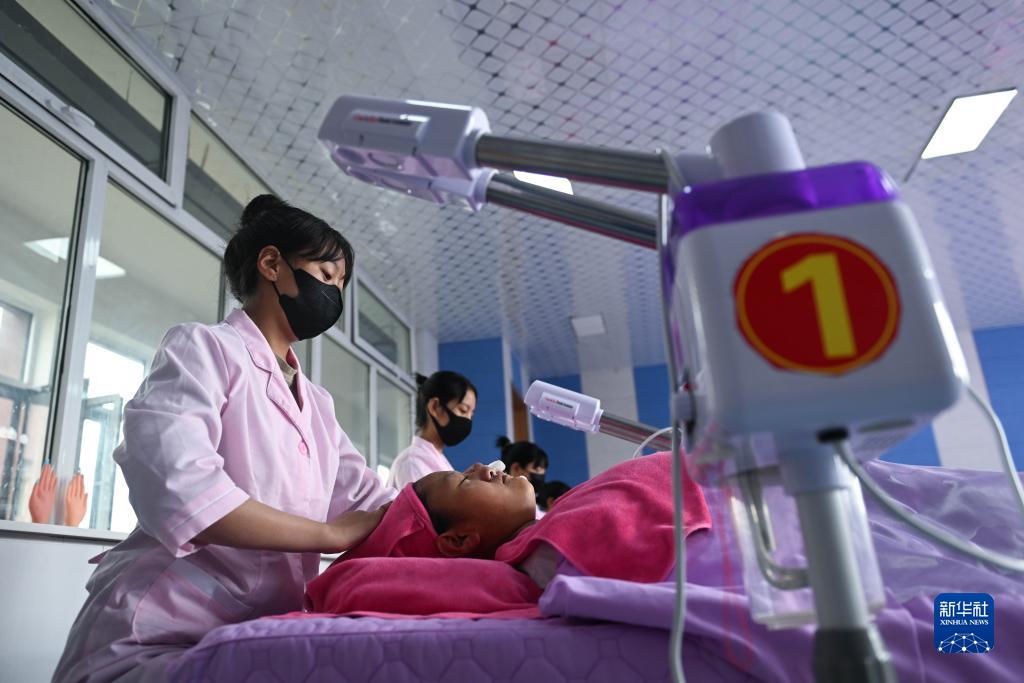 9月8日,在果洛藏族自治州職業技術學校,美發與形象設計學生在學習美容實訓課程。