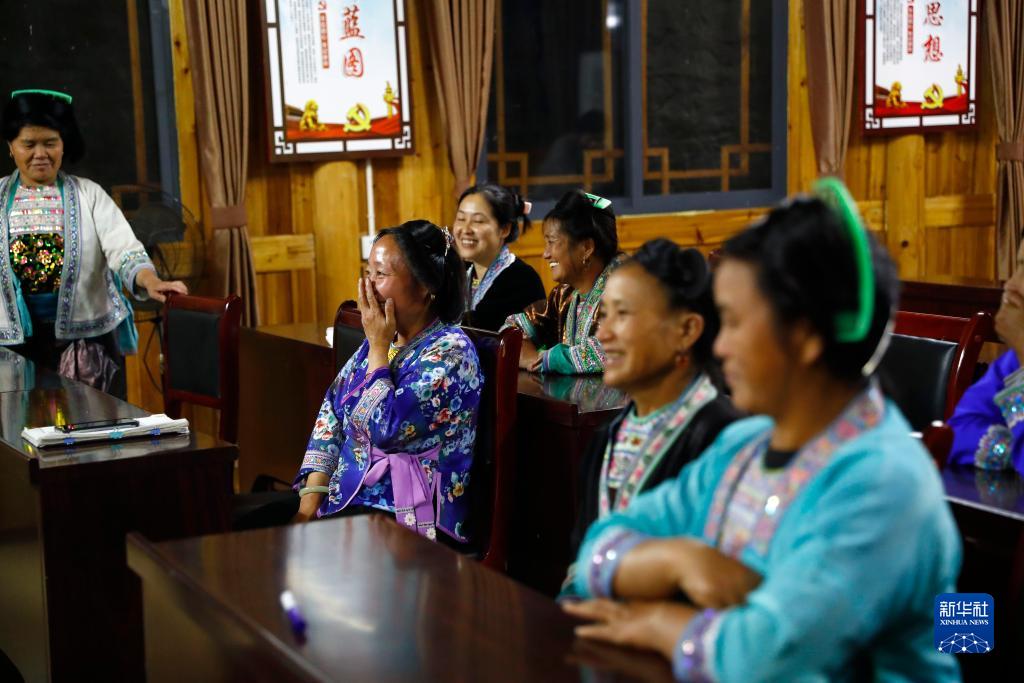 在烏英苗寨婦女夜校,婦女們在聽潘先鋒老師講課(2023年8月30日攝)。