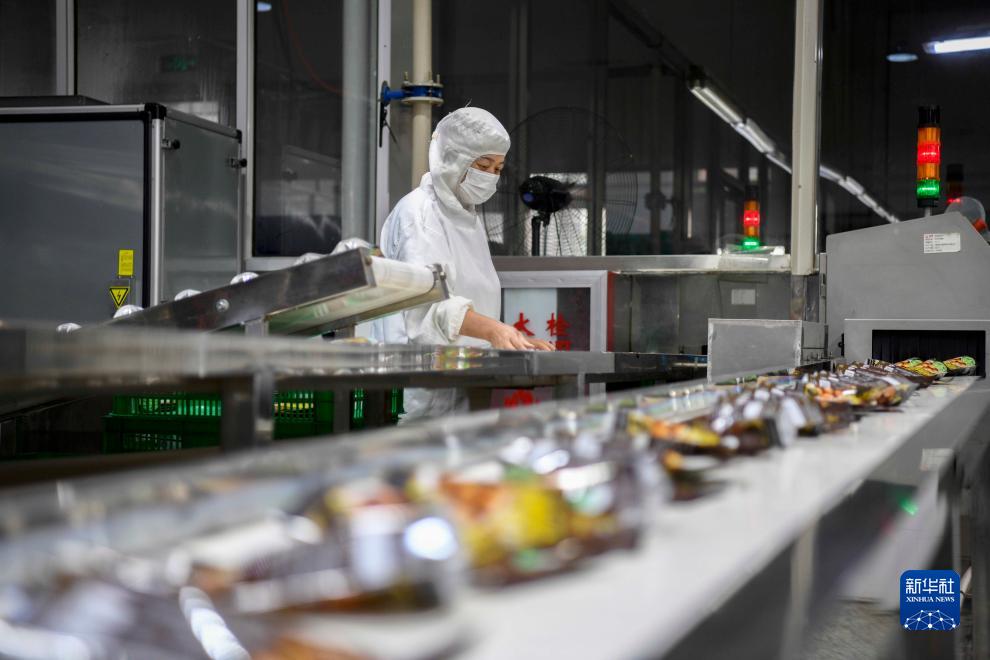 9月8日,在寬城縣一家板栗深加工企業,工人在生産車間檢查板栗産品外觀。