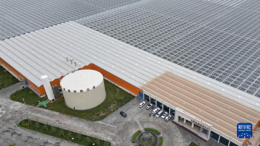 9月7日在臨夏市枹罕鎮拍攝的一處花卉特色産業示範園區智能溫室(無人機照片)。