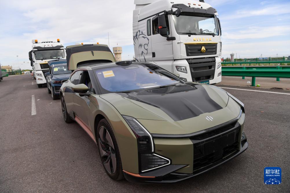 這是在霍爾果斯公路口岸等待出口的國産新能源汽車(9月6日攝)。