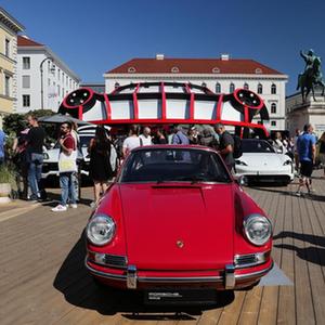 9月8日,人們在德國慕尼黑國際車展城市公共展示區的保時捷展區參觀。