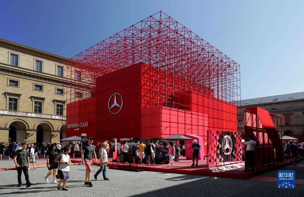 9月8日,人們在德國慕尼黑國際車展城市公共展示區的奔馳展區參觀。