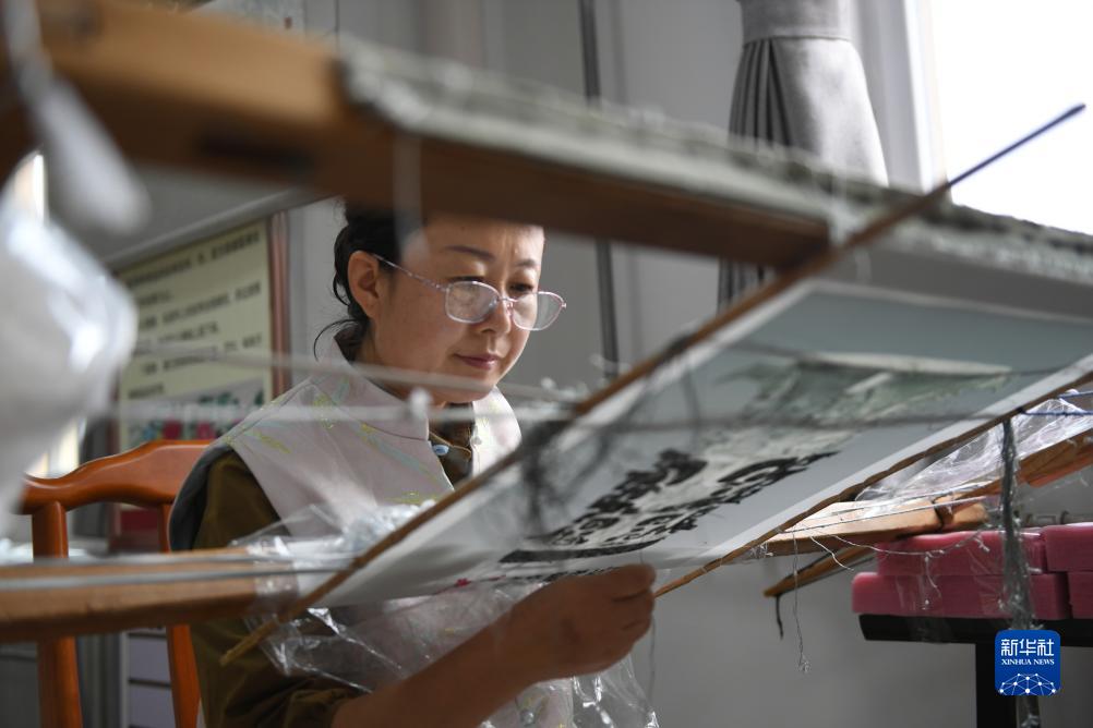 9月8日,在寶雞西秦刺繡文化産業園,千陽繡娘在刺繡。陜西千陽縣是國家級非物質文化遺産“西秦刺繡”的重要發祥地和傳承地。近年來,千陽縣將西秦刺繡作為助農增收的重要産業,推動非遺項目産業化發展,助力鄉村振興。