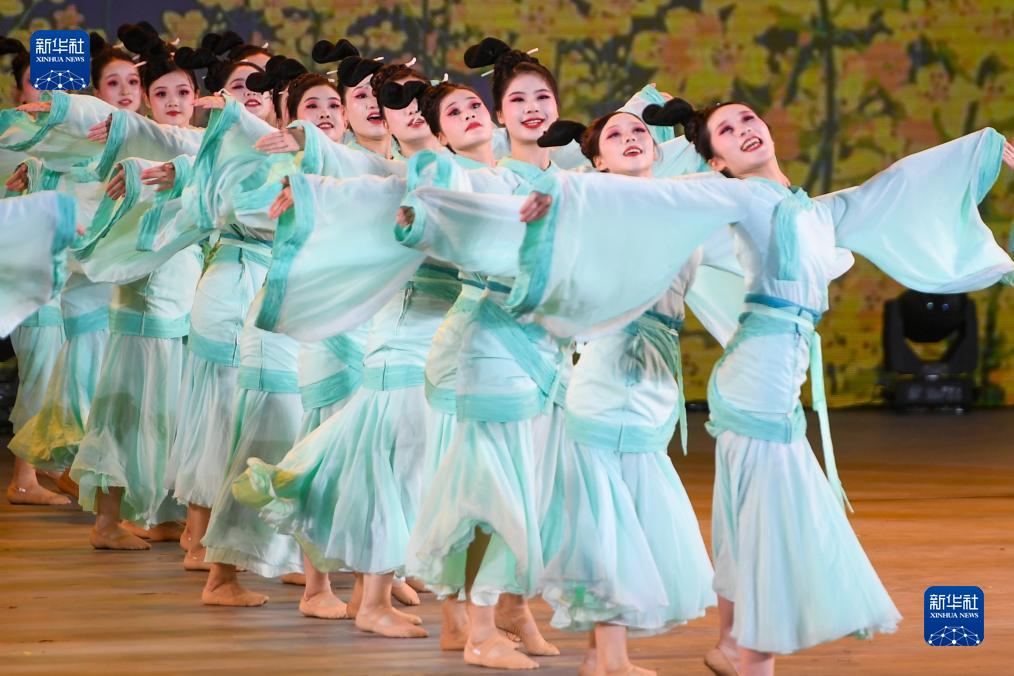 9月8日,表演團隊在演出廣場舞《千里江陵》。