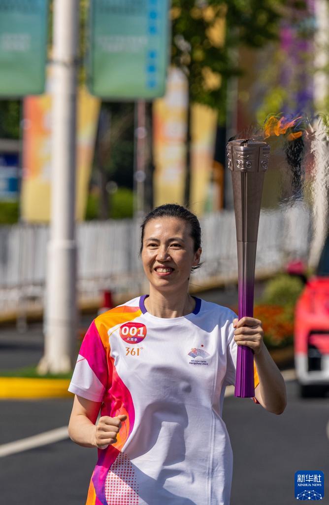 9月9日,火炬手周蘇紅在火炬傳遞中。