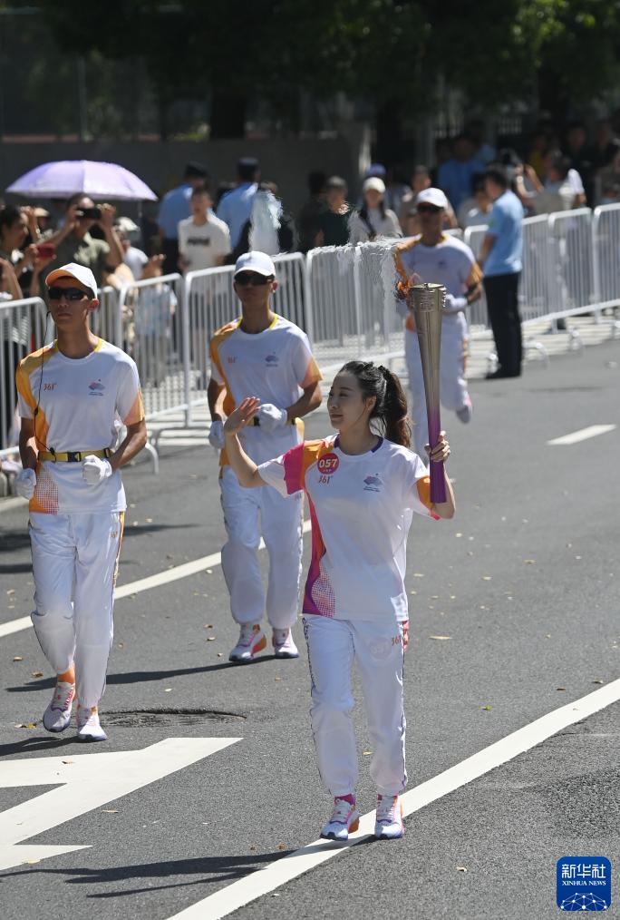 9月9日,火炬手戴丹丹在火炬傳遞中。