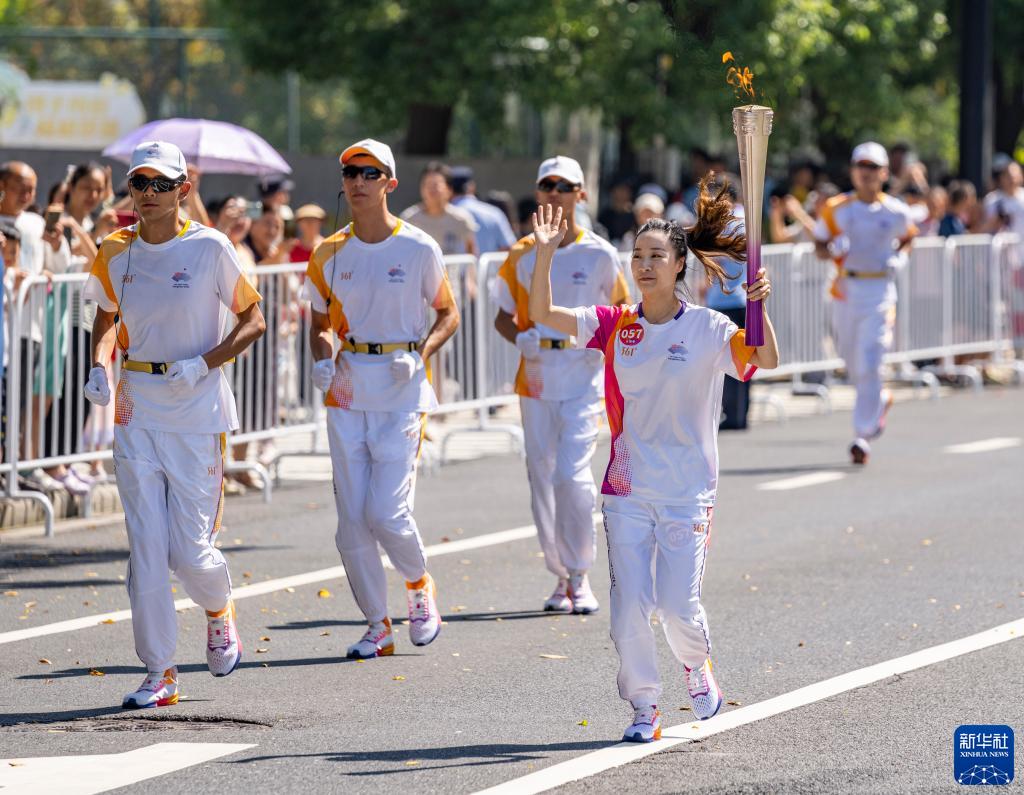 9月9日,火炬手戴丹丹在火炬傳遞中。