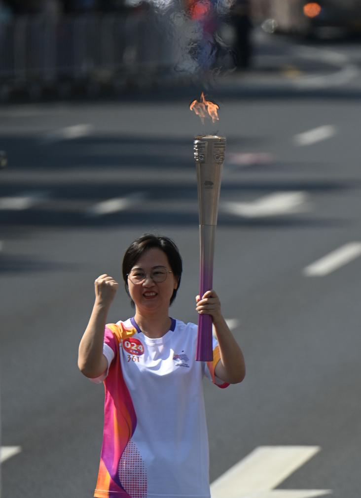 9月9日,火炬手張珊在火炬傳遞中。
