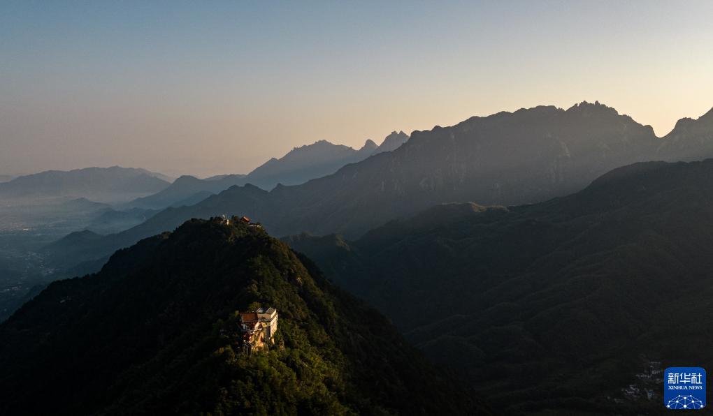 9月9日拍攝的九華山清晨日出時分景色(無人機照片)。