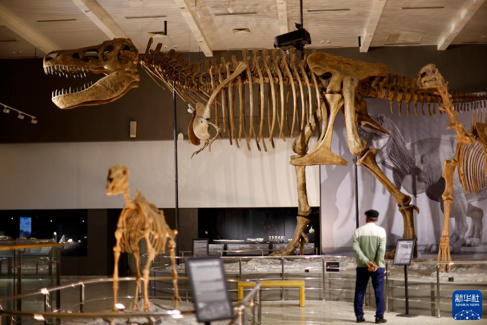 9月8日,一名男子在位於哈薩克斯坦首都阿斯塔納的哈薩克斯坦國家博物館內參觀。