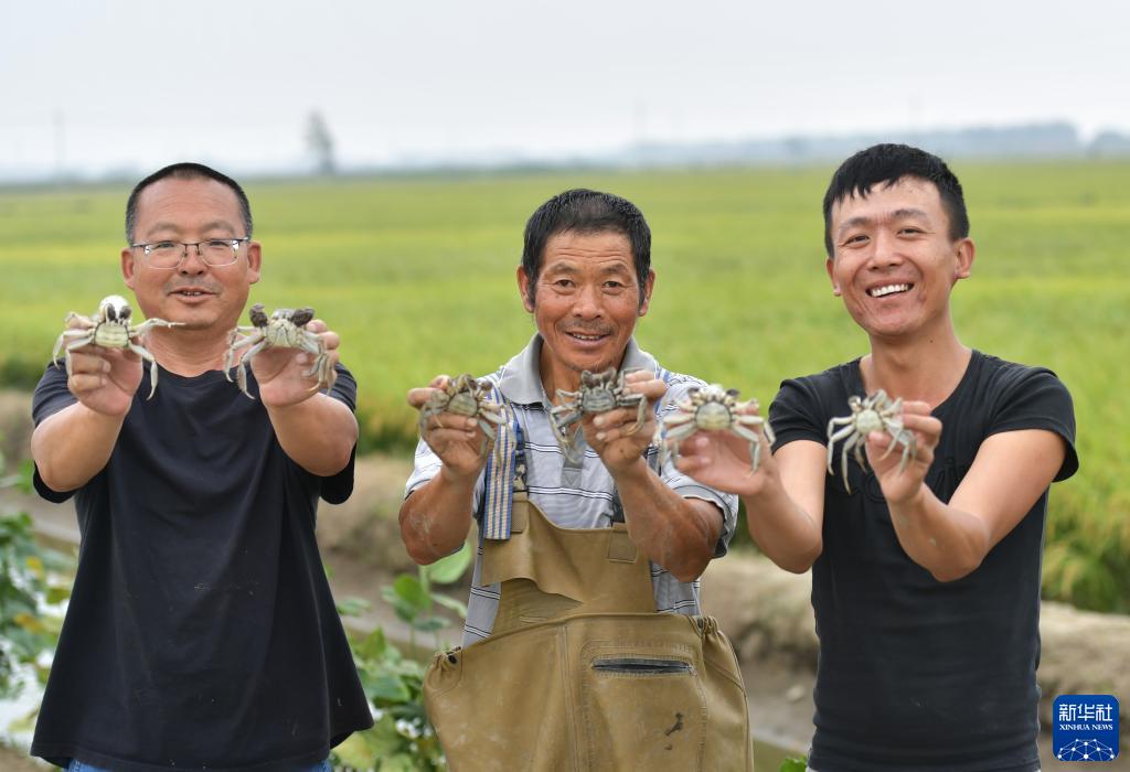 近日,瀋陽市沈北新區興隆&街道青年農場稻田裏混養的河蟹迎來豐收,預計9月下旬,蟹田水稻也將成熟收穫。一水多用、一田雙收,稻蟹共養成為農戶增收致富的新渠道。