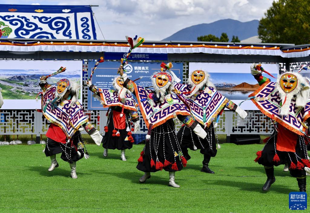 在拉薩市林周縣邊交林鄉當傑村,演員在第十六屆西藏珠穆朗瑪攝影大展開幕式上表演節目(9月8日攝)。