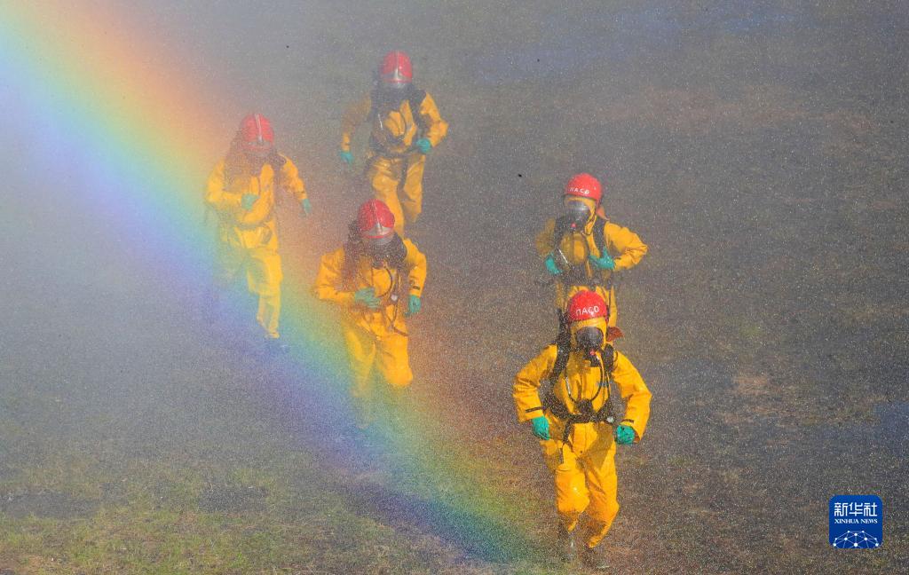 9月5日,演習人員在白俄羅斯明斯克州進行消防救援演習。