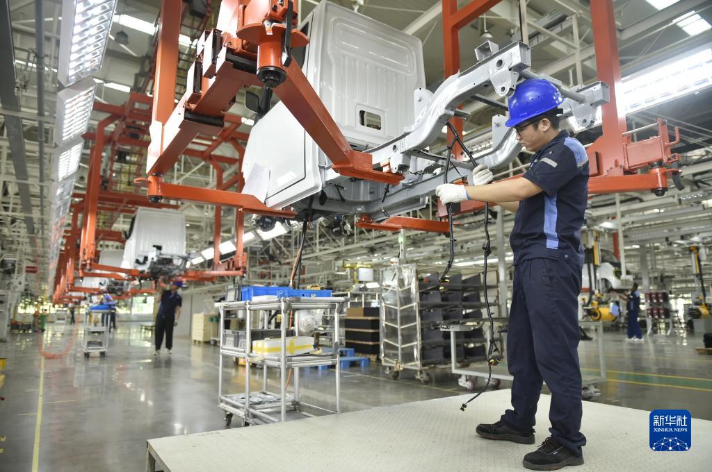 9月8日,河南省安陽市安陽縣一家新能源汽車製造企業的工作人員在車間進行裝配作業。