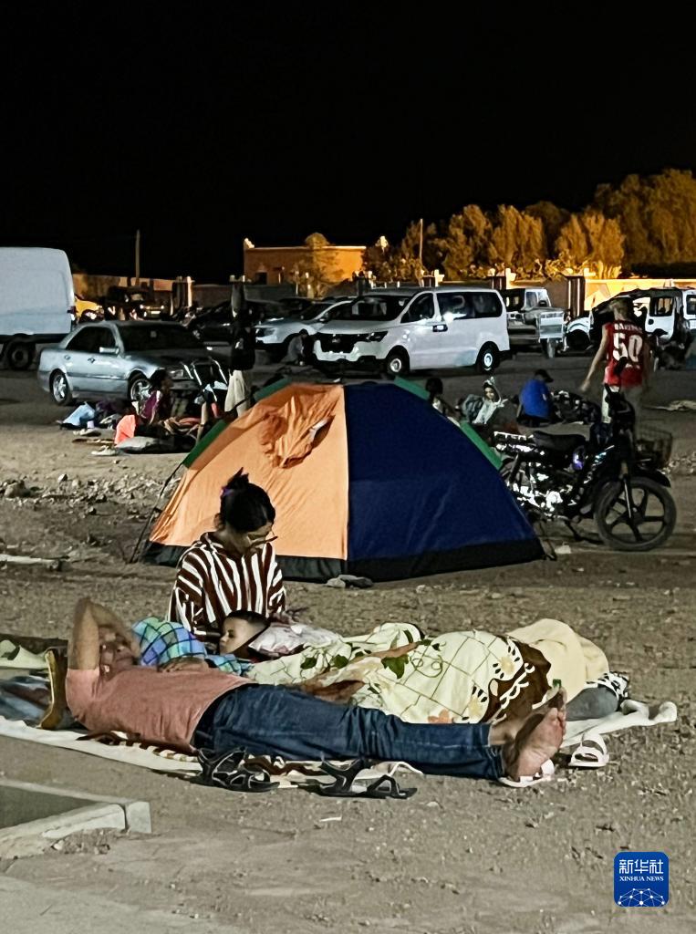 9月9日凌晨,在距離震中200多公里的摩洛哥瓦爾扎扎特市,居民來到戶外避險(手機照片)。