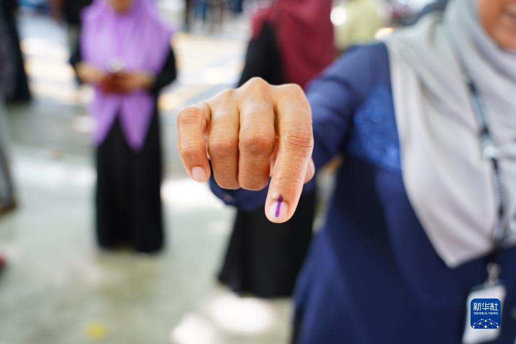 9月9日,在馬爾代夫馬累,一名選民投票後展示做過標記的手指。
