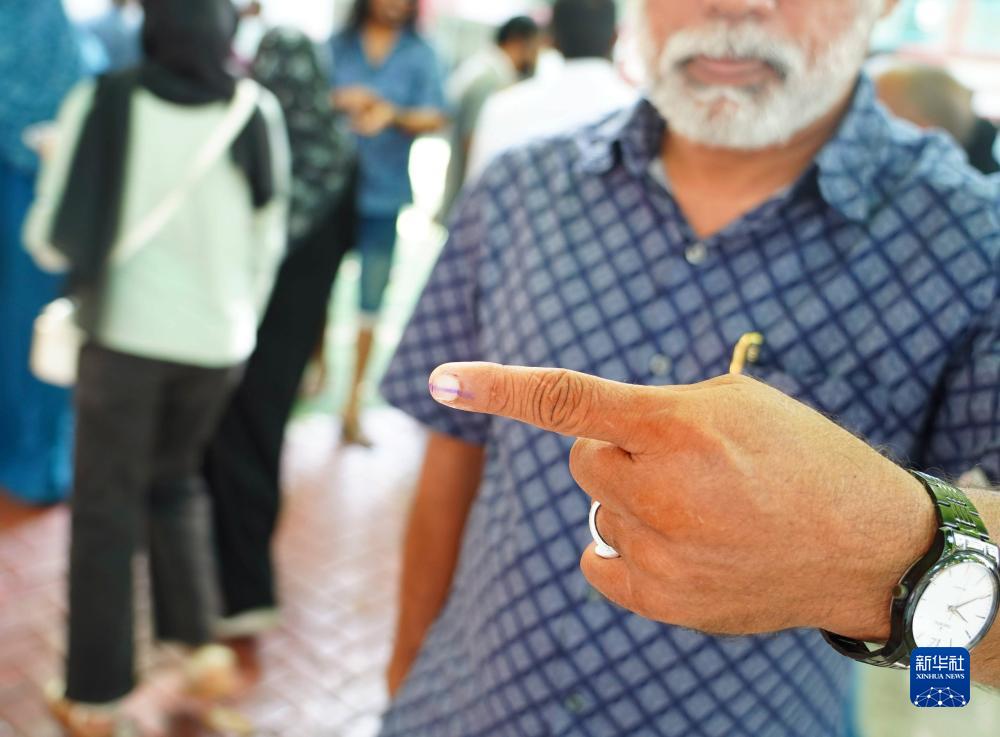 9月9日,在馬爾代夫馬累,一名選民投票後展示做過標記的手指。