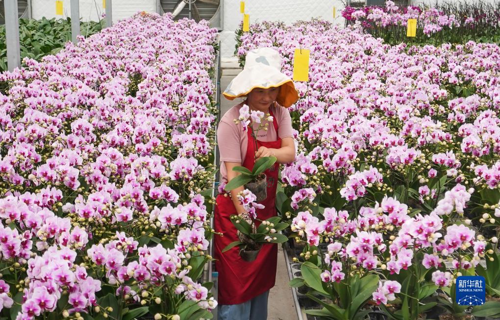 9月9日,農戶在宿遷市王官集鎮蝴蝶蘭大世界大棚內忙碌。