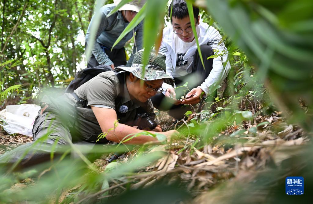9月5日,曾念開和學生在海南鸚哥嶺熱帶雨林拍攝菌類。