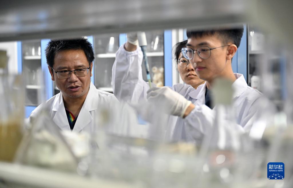 9月8日,曾念開(左一)在海南醫學院和學生一起做實驗。