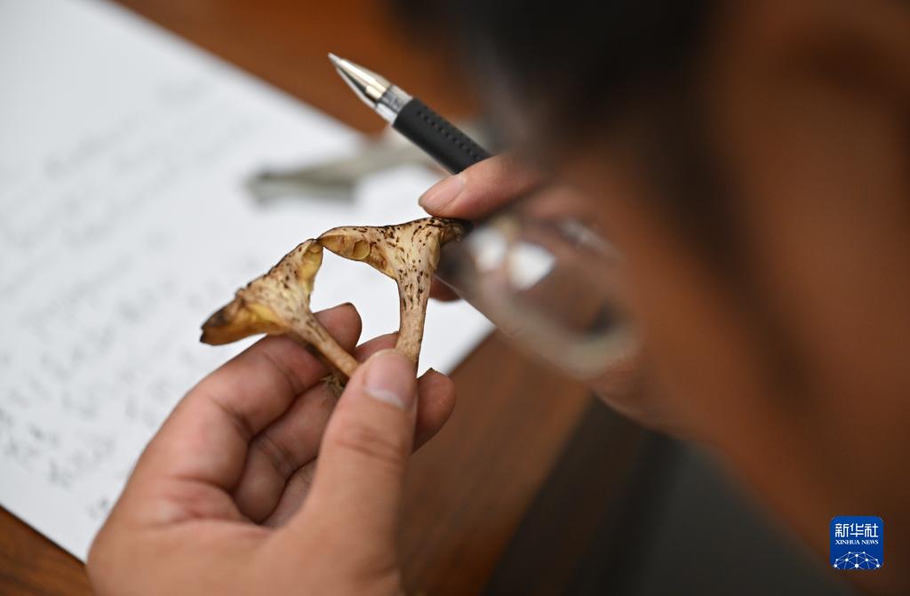 9月5日,曾念開對變紅褶孔牛肝菌新鮮標本進行特徵記錄。