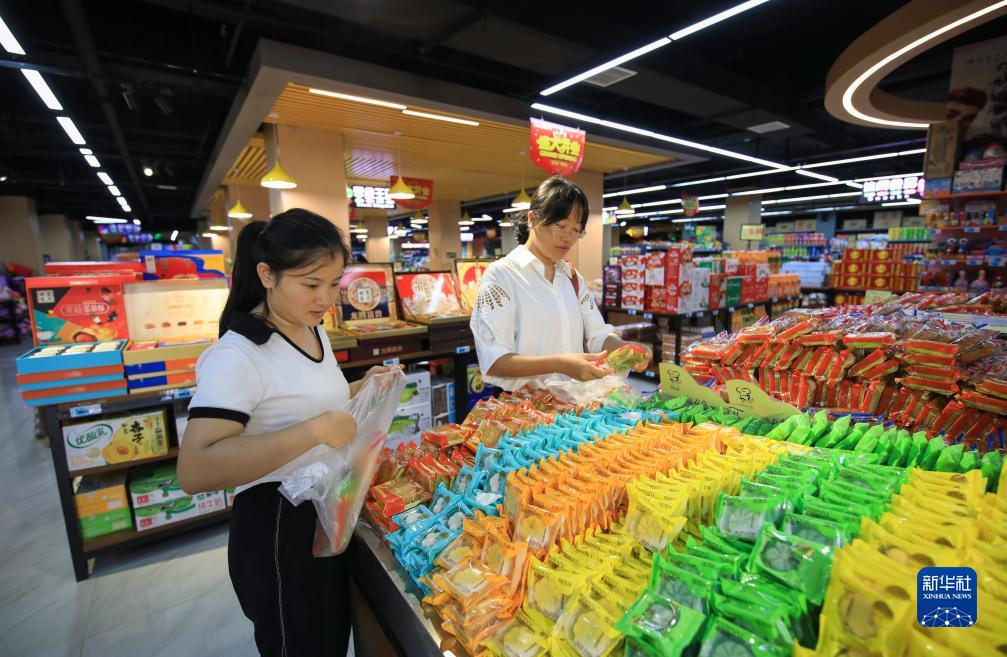 9月9日,消費者在貴州省從江縣一家超市選購食品。