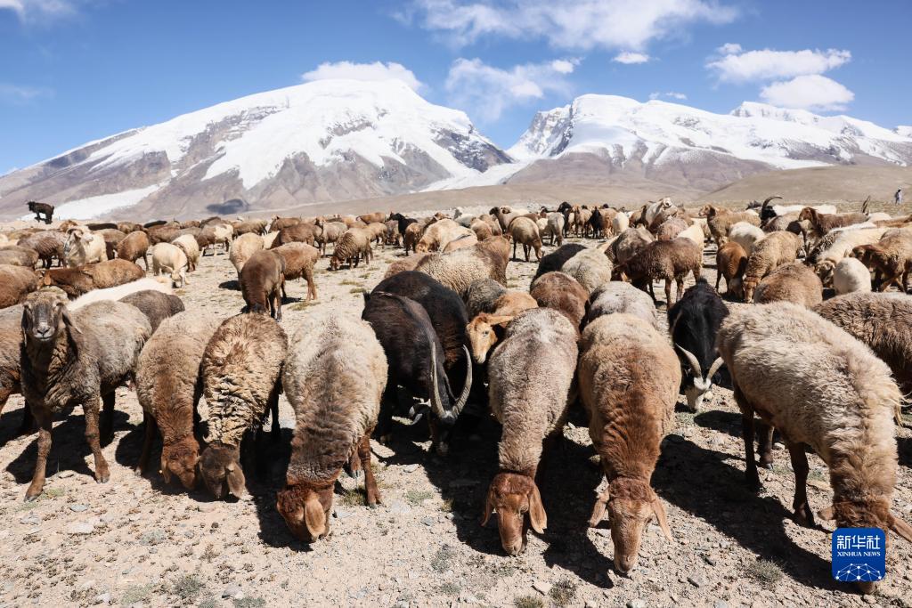 在“冰川之父”慕士塔格峰腳下,新疆塔什庫爾幹塔吉克自治縣塔合曼鄉境內的一片天然草場吸引周邊鄉村的牧羊人在此放牧。進入秋季以來,草場漸漸泛黃,屹立於遠處的慕士塔格峰和公格爾九別峰在藍天白雲的映襯下格外壯美,一幅寧靜悠遠的牧羊圖引人入勝。