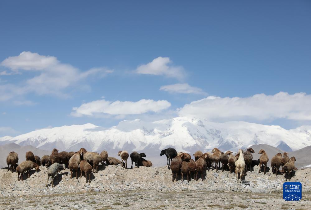 在“冰川之父”慕士塔格峰腳下,新疆塔什庫爾幹塔吉克自治縣塔合曼鄉境內的一片天然草場吸引周邊鄉村的牧羊人在此放牧。進入秋季以來,草場漸漸泛黃,屹立於遠處的慕士塔格峰和公格爾九別峰在藍天白雲的映襯下格外壯美,一幅寧靜悠遠的牧羊圖引人入勝。