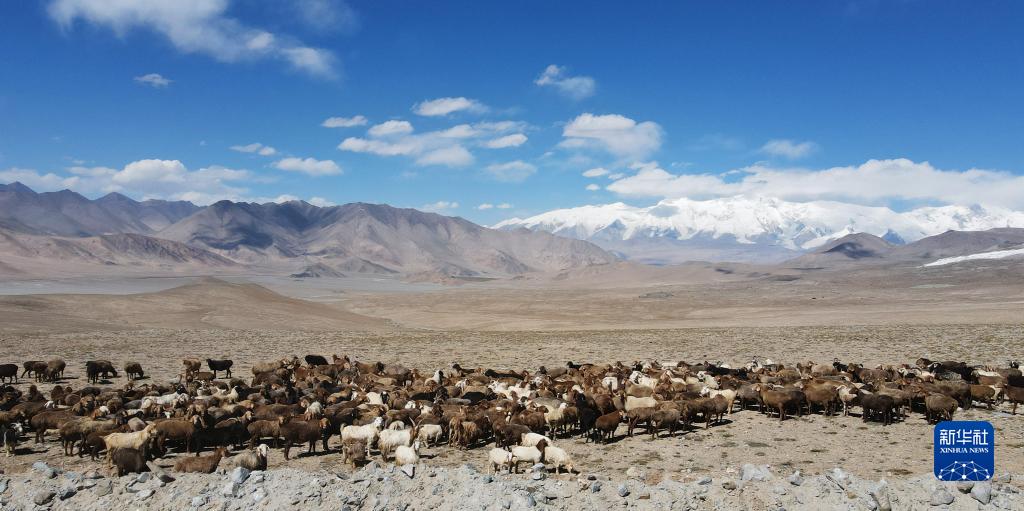 在“冰川之父”慕士塔格峰腳下,新疆塔什庫爾幹塔吉克自治縣塔合曼鄉境內的一片天然草場吸引周邊鄉村的牧羊人在此放牧。進入秋季以來,草場漸漸泛黃,屹立於遠處的慕士塔格峰和公格爾九別峰在藍天白雲的映襯下格外壯美,一幅寧靜悠遠的牧羊圖引人入勝。