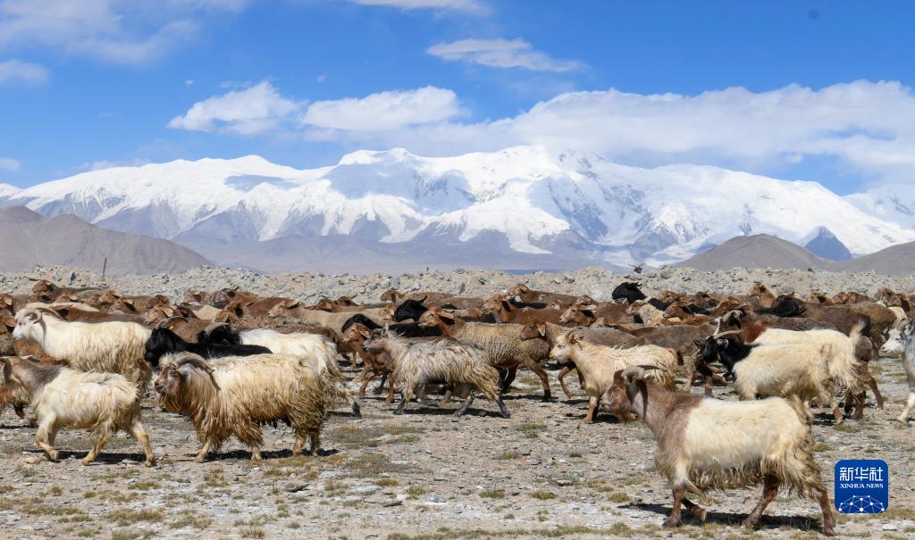 在“冰川之父”慕士塔格峰腳下,新疆塔什庫爾幹塔吉克自治縣塔合曼鄉境內的一片天然草場吸引周邊鄉村的牧羊人在此放牧。進入秋季以來,草場漸漸泛黃,屹立於遠處的慕士塔格峰和公格爾九別峰在藍天白雲的映襯下格外壯美,一幅寧靜悠遠的牧羊圖引人入勝。