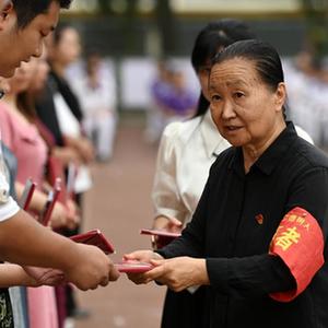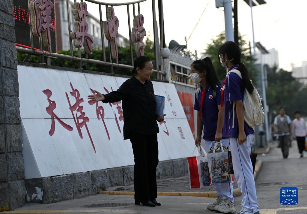 清晨六點多,年過七旬的天津市津英中學校長張慧穎早早站在學校大門口,用微笑迎接學生的到來。她衣着樸素大方,手臂上挂着醒目的袖標,在一聲聲“同學,你好!”的問候中開啟學校新的一天。