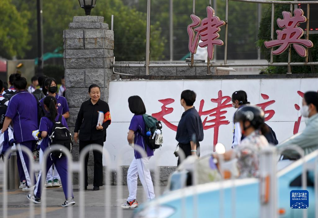 張慧穎在津英中學門口迎接學生入校(9月8日攝)。