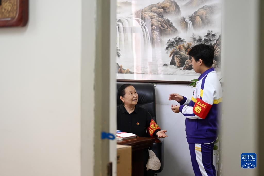 張慧穎在津英中學的辦公室裏和學生交流(9月8日攝)。