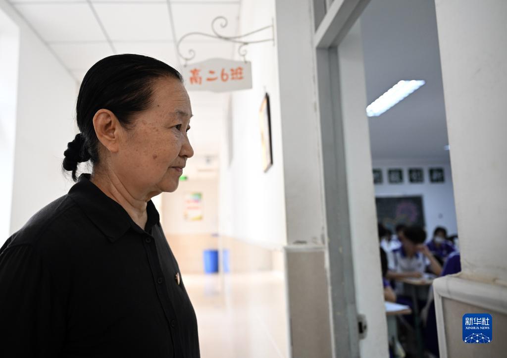 張慧穎在津英中學的教學樓內巡查教學情況(9月8日攝)。